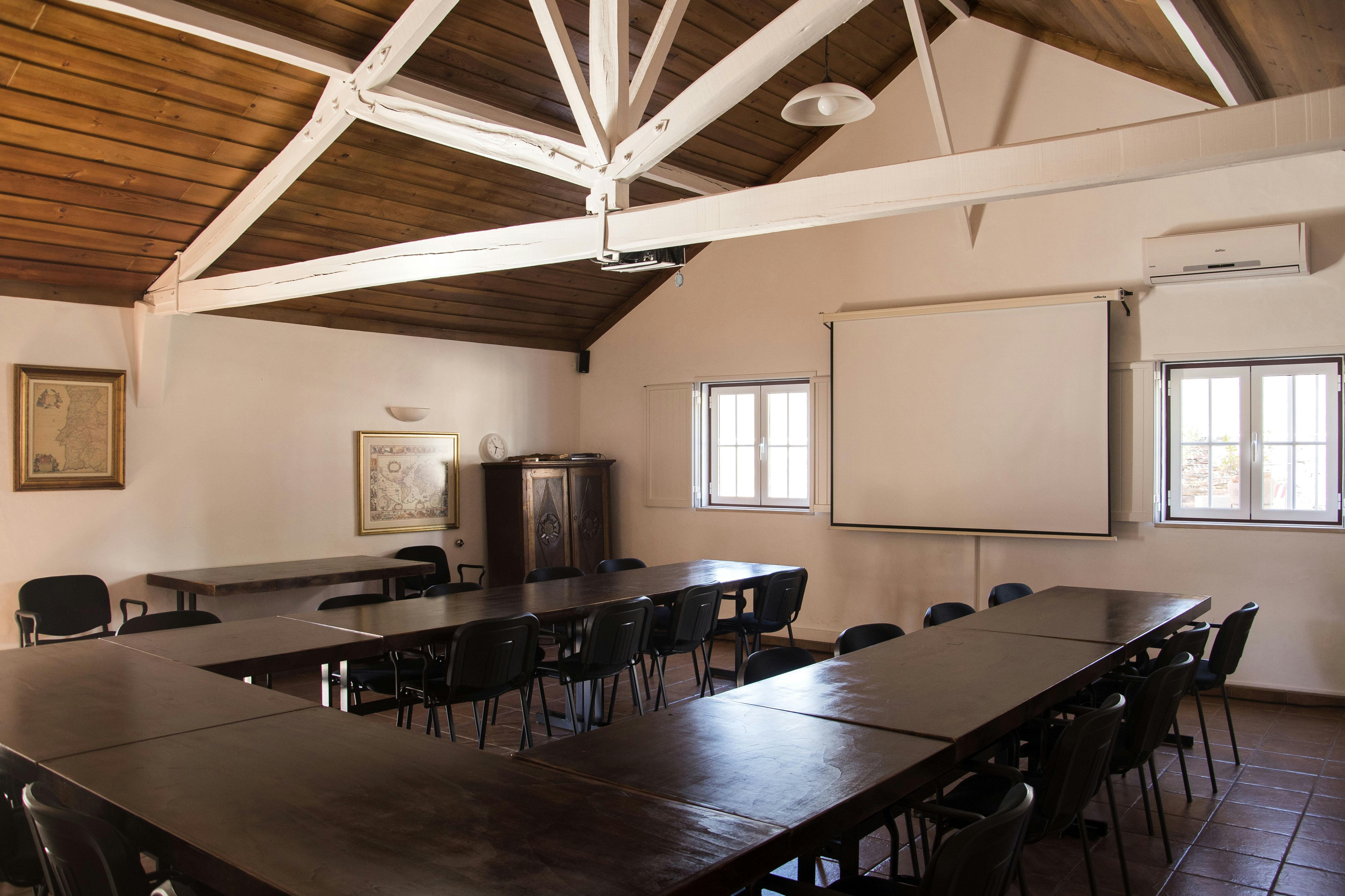 A sólo un kilómetro de Lisboa, con muy fácil acceso desde la autopista A2, puede organizar su reunión de equipo utilizando nuestras versátiles instalaciones, incluyendo nuestra sala de reuniones, equipada con proyector, rotafolios y pizarra blanca y sonido envolvente, preparada para grupos de unas 20 personas.